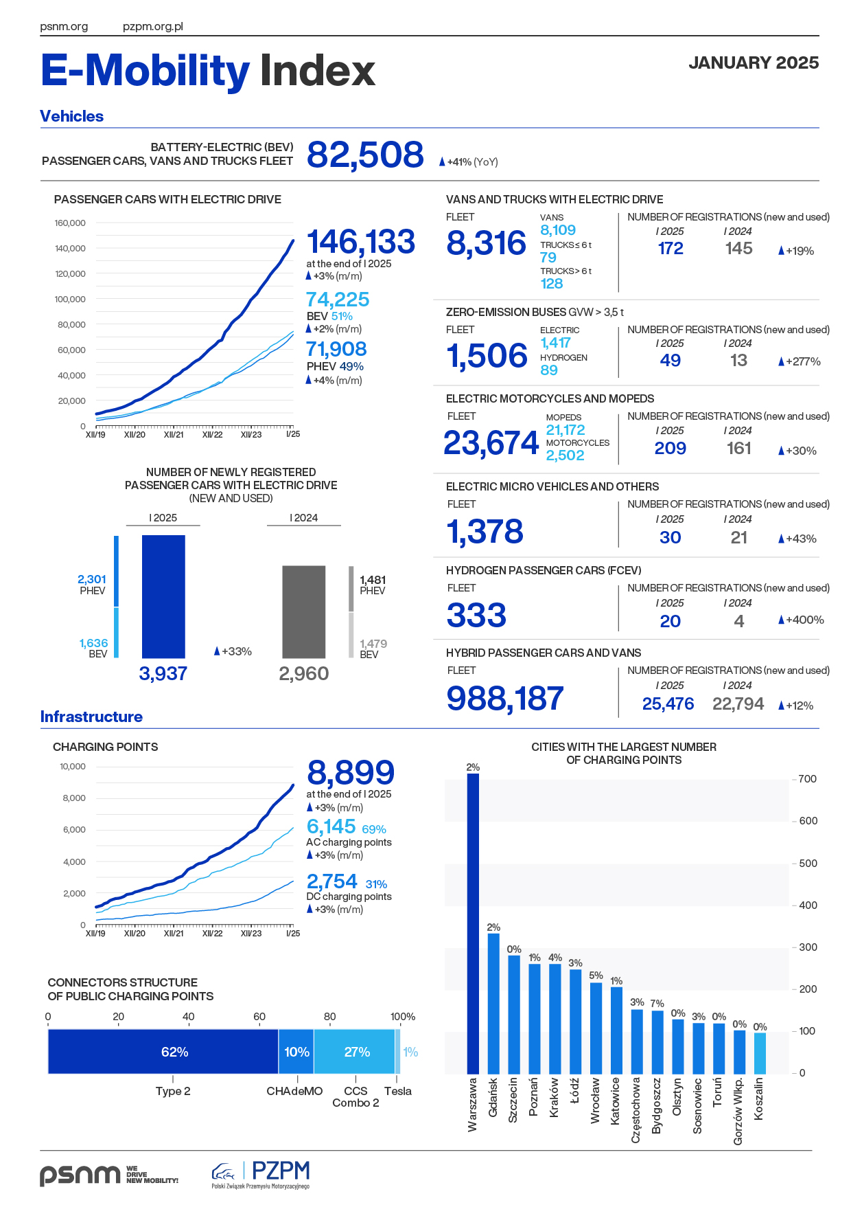 According to data from the end of November 2025, a total of 124 003 passenger and commercial all-electric vehicles (BEVs) were registered in Poland. In the first eleven months of this year, their number increased by 43 977 units, by 103% more than in corresponding period in 2024 - according to the E-mobility Index, launched by PZPM and PSNM.