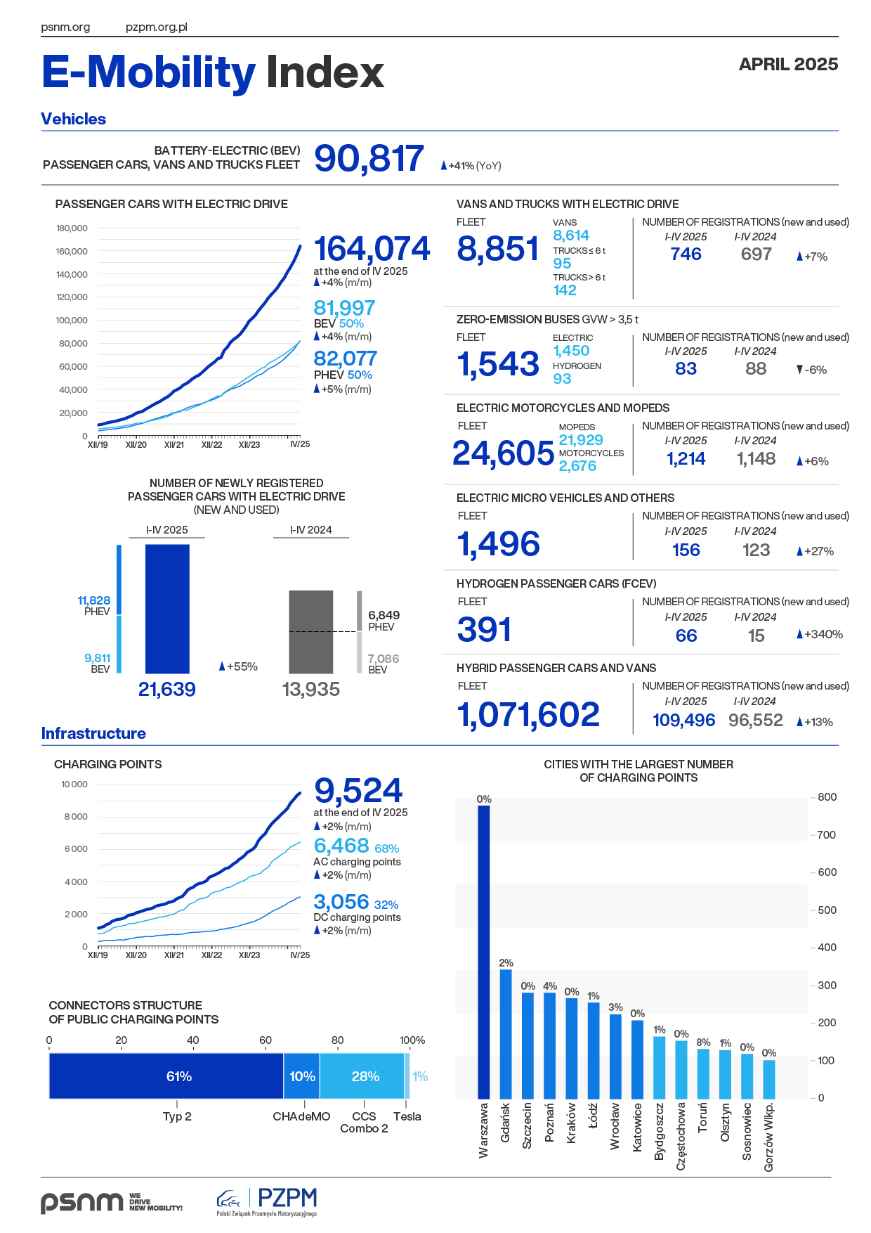 PZPM / PSNM - E-mobility Index: More than ten thousand publicly accessible charging points in Poland “electric” market
