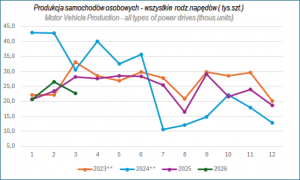 Prezentujemy wyniki dot. PRODUKCJI POJAZDÓW SAMOCHODOWYCH oraz SILNIKÓW DO POJAZDÓW MECHANICZNYCH w POLSCE w MARCU 2026  na podstawie danych GUS