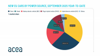 Do września 2025 r. liczba rejestracji nowych samochodów w UE zwiększyła się o 0,9% w porównaniu z tym samym okresem ubiegłego roku. Jednocześnie wrzesień był trzecim miesiącem z rzędu ze wzrostem. Ta dynamika w ostatnim okresie wynikała w pewnym stopniu z wprowadzenia na rynek nowych modeli, a sam wrzesień odnotował silny wzrost o 10%. Udział samochodów elektrycznych z napędem akumulatorowym utrzymuje się od początku roku na stałym poziomie 16,1%, nadal poniżej progu wymaganego na tym etapie transformacji. Najpopularniejszym rodzajem napędu wśród nabywców pozostały pojazdy hybrydowe.